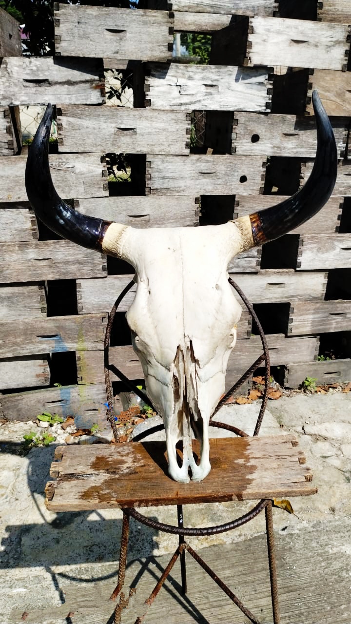 1. Recolección de los cuernos de toro en el rastro: Algunos de los cuernos están en buen estado, algunos están muy dañados y sucios.