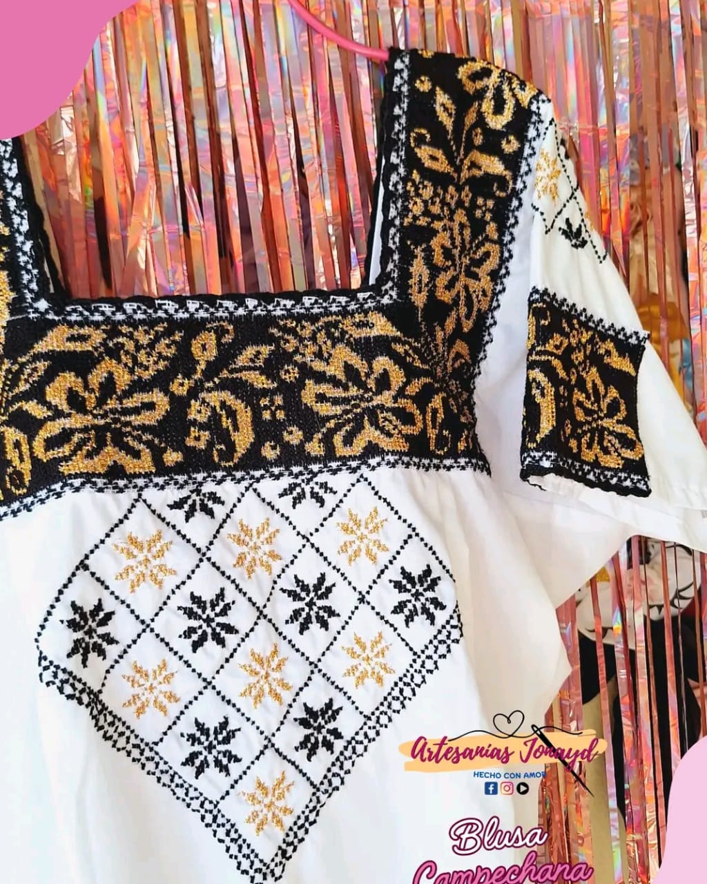 Para el bordado de la blusa Campechana (lomillo), se necesita agujas, malla hilo blanco e hilo negro de bordar.